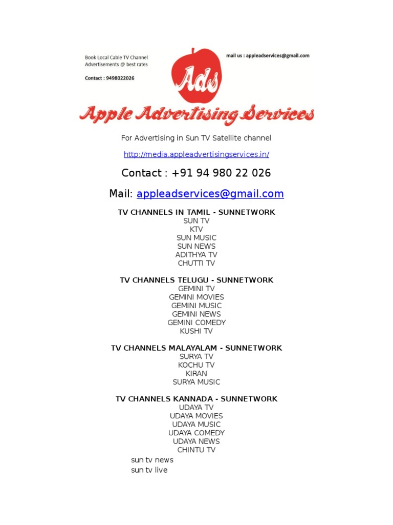 Sun Tv Satellite Channel Live Online Ad Agent Broadcasting Tamil Nadu